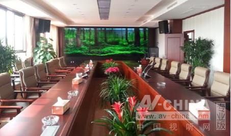 普通的墻面裝修、會議桌、椅子和幾盆綠植,幾乎全是會議室的標配,但這個糧食局會議室卻成就了非凡的智能應用,因為室內還豎立著一套清投3X5的液晶拼接大屏。