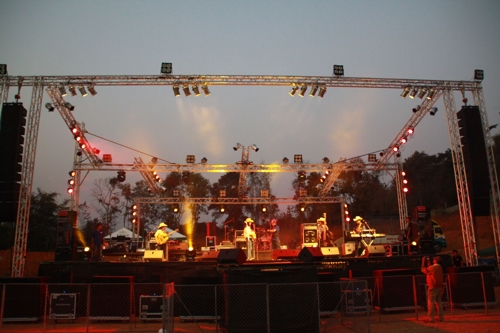 采用AUDIOCENTER奧雷 K-LA28 & PF218B+(3+1)系統,該系統由2組K-LA28三分頻線陣列揚聲器支撐 PF218B+超低頻揚聲器組合而成;每組由1只PF218B+支撐3只K-LA28使用;系統搭配AUDIOCENTER奧雷 PRO系列功放。側補聲系統確保了演唱會每個觀眾區域達到最佳的聲場覆蓋需求。
