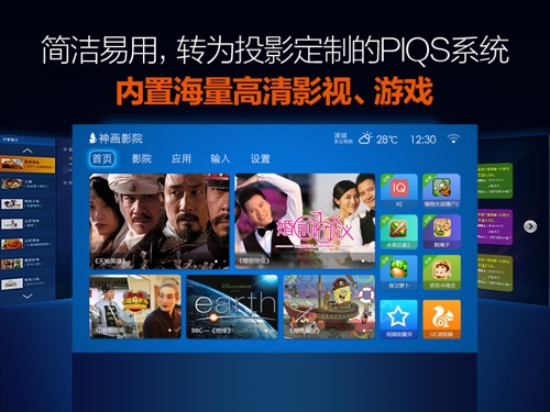 人們對于現代家庭影音娛樂已不僅僅是停留在大尺寸屏幕的初級階段,而是對畫面的清晰度和色彩表現力提出了更高的要求。采用了更科學的色彩流明值標注的神畫Y1智能3D投影儀,在投影能力上不僅可以媲美2000白流明亮度的投影儀,而且還擁有領先的2秒自動對焦專利技術和強大的智能系統和硬件配置,是目前值得擁有的高性能家庭3D影院。