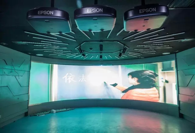 多媒體展廳整體面積為80平米,需要經(jīng)常播放一些宣傳片及政策相關(guān)的影像資料,為了能夠保障資料的完美展示效果,因此要求投影機(jī)具備卓越的色彩輸出能力和極高的清晰度。其次,為了能夠讓參觀者在展廳中體驗(yàn)更加生動(dòng)形象的影像效果,展廳使用了超寬的弧形屏幕,這就要求投影機(jī)能滿足多屏幕弧形融合拼接功能。