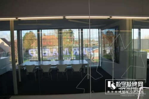 屏幕安裝在會議室的落地玻璃窗上,主要用于白天和晚上對外播放廣告視頻,白天完全不影響光線投入室內,窗外陽光明媚,美景盡收眼底。