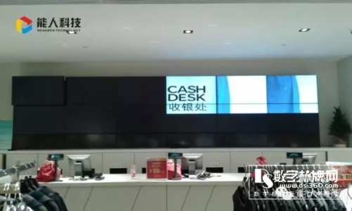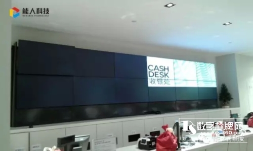考慮到品牌旗艦店對視頻墻顯示效果及穩定運行等因素的高端需求,能人科技為其選用了口碑頗佳的NEC視頻墻設備。位于店面收銀臺一側的墻面,采用18臺NEC 46英寸超窄邊拼接單元X464UN以3×6的方式拼接成一面巨型視頻墻。輔以后端的信息處理系統,由用戶自定義的圖像、文字或視頻等信息可經由圖像處理器直接上屏顯示。