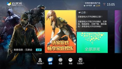 而作為同方在TV游戲領域戰略性布局的Cloud Dimension云次元游戲平臺則有著本質的區別,所有游戲存儲在云端,通過解碼技術,可實現在主流智能機頂盒、智能手機、智能電視、PC上順暢運行,也可與遙控器、手柄、搖桿等多種游戲外設極簡適配。用戶通過互聯網一賬號登陸,無需下載,打開電視就可以隨意暢玩云次元游戲平臺上百款經典次世代游戲大作,為廣大家庭用戶營造了一個低成本、全終端、一云多屏的劃時代游戲世界。