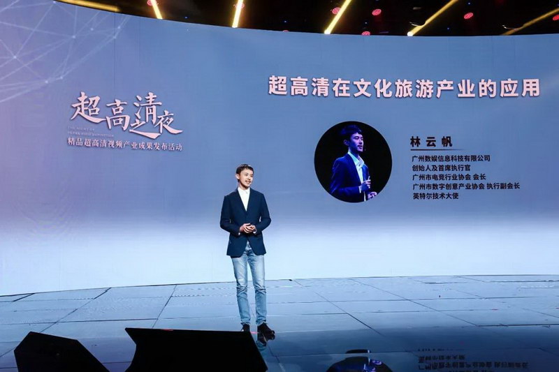 今天(16日),由廣東省廣播電視局指導(dǎo),廣州市文化廣電旅游局、廣州市工業(yè)和信息化局、廣州市廣播電視臺主辦的“超高清之夜”——精品超高清視頻產(chǎn)業(yè)成果發(fā)布活動在廣州花果山超高清視頻產(chǎn)業(yè)特色小鎮(zhèn)舉行。數(shù)娛科技總裁林云帆受邀出席大會并發(fā)表《超高清在文化旅游產(chǎn)業(yè)的應(yīng)用》專題演講。