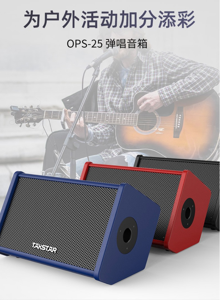 OPS-25 便攜式彈唱音箱傾斜式箱體設(shè)計,緊湊輕便體積小、主機(jī)僅重約6kg,方便攜帶。同時擁有紅、藍(lán)、黑三款經(jīng)典色,時尚大氣雅而不俗。