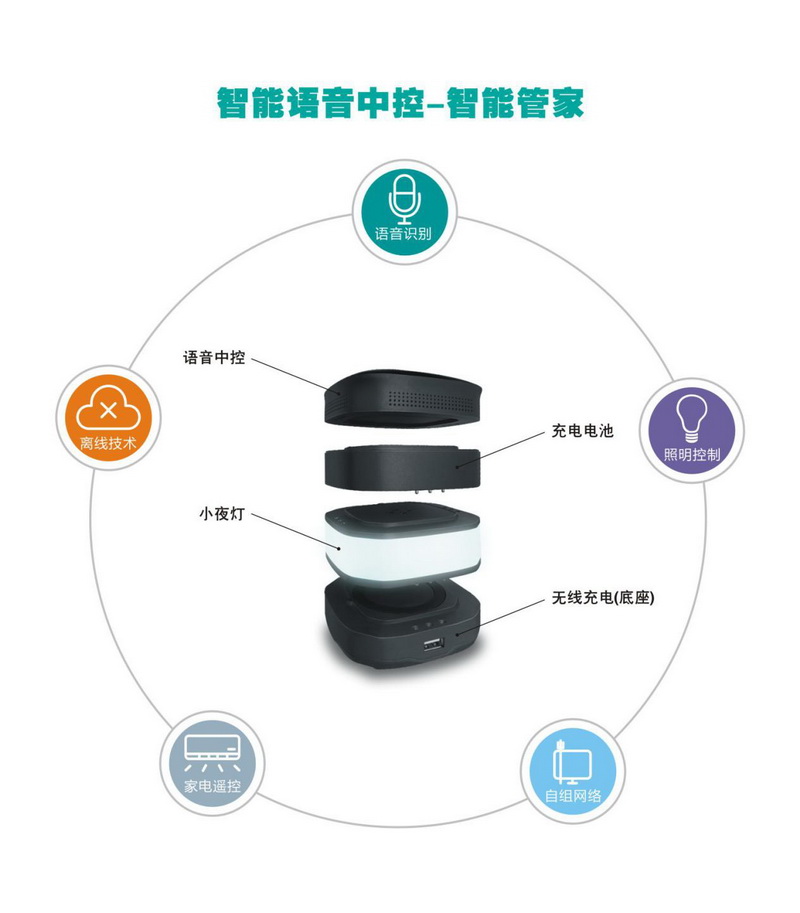 思正好家聲智能管家是一款先進的離線語音智能家居控制系統(tǒng),其內(nèi)置靈敏的智能語音識別系統(tǒng),擁有極速語音操控能力,用戶可通過語音即可實現(xiàn)與室內(nèi)家電的交互控制,是提升現(xiàn)代家庭生活品質(zhì)必備的智能語音助手。智能管家有求必應,呼喚一聲:幫您開關(guān)電視、控制空調(diào)、開關(guān)房燈、打開窗簾、開關(guān)風扇、開關(guān)插座;同時具備無線充電、小夜燈等實用功能。無需WIFI,無需APP;即插即用、設置簡單;反應靈敏易用。