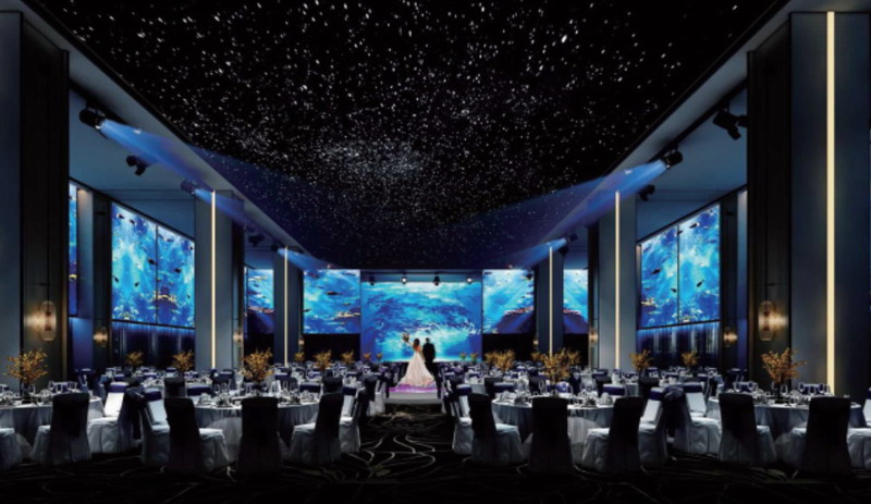 在某酒店的全息宴會廳,長虹工程激光電視讓宴會廳的墻壁可以根據(jù)宴會主題切換裝飾場景,流光溢彩,光影燦然。這樣,不僅可以更靈活地滿足顧客對宴會氛圍的需求,還能為顧客節(jié)省布置成本,讓酒店吸引更多的顧客預(yù)定使用。
