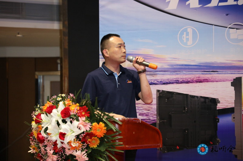 企業(yè)品牌及方案講解環(huán)節(jié),視聽會湖北分會長單位武漢艾錦科技有限公司銷售總監(jiān)王幼鵬從產(chǎn)品、技術、價格等方面分享道,企業(yè)的長久生存之道應以專業(yè)和服務為先,并結合案例介紹了企業(yè)視聽產(chǎn)品。
