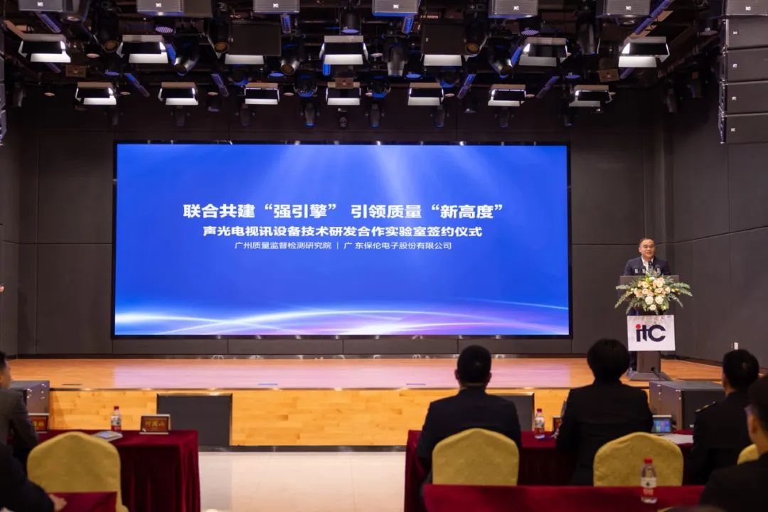 2023年3月1日上午,聯(lián)合共建“強(qiáng)引擎” 引領(lǐng)質(zhì)量“新高度”——廣東保倫電子股份有限公司與廣州質(zhì)量監(jiān)督檢測研究院“聲光電視訊設(shè)備技術(shù)研發(fā)合作實(shí)驗(yàn)室”簽約儀式在itc舉行。聲光電視訊設(shè)備技術(shù)研發(fā)合作實(shí)驗(yàn)室的成功簽約,將充分發(fā)揮各自資源優(yōu)勢,深度開展交流合作,打通從實(shí)驗(yàn)室到產(chǎn)業(yè)化的“最后一公里”,引領(lǐng)行業(yè)高質(zhì)量發(fā)展。