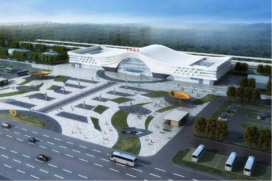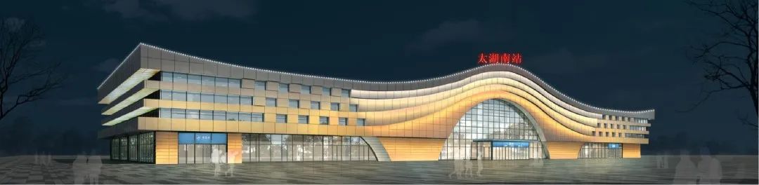 太湖南站,是安慶至九江高速鐵路的中間站點(diǎn)。在站房建筑立面設(shè)計(jì)中,以“日出平湖、禪宗圓相”為理念,抽象應(yīng)用類(lèi)似湖面的柔美曲線與宛若日出的拱形入口作為外部框架,表現(xiàn)碧波蕩漾、日出平湖的形態(tài)及禪宗中圓相的意境。